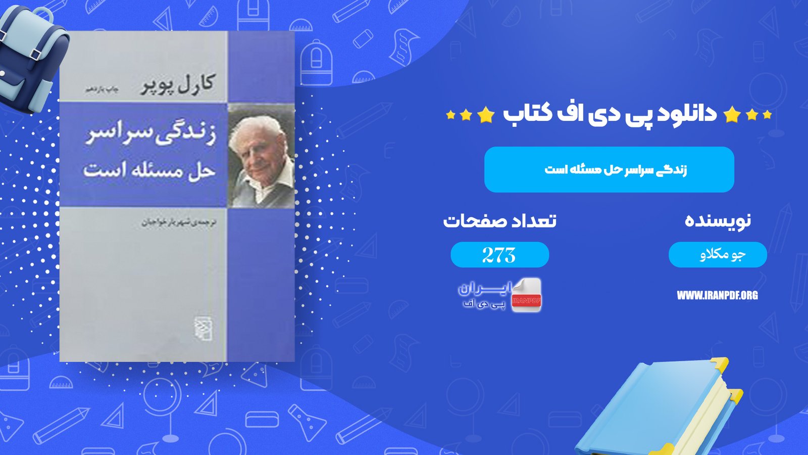 وب سایت ایران پی دی اف بزرگترین سایت فروش پی دی اف اینبار دانلود pdf کتاب زندگی سراسر حل مسئله است کارل پوپر را با دقت و بهترین کیفیت آماده کرده است .. کتاب **زندگی سراسر حل مسئله است** مجموعهای تحریکآمیز از نوشتههای **کارل پوپر** است که به مشغلههای اصلی او در طول بیست و پنج سال آخر زندگیاش میپردازد. این اثر، به خوبی روند کار پوپر در زمینه تدوین فرمولهای اصلی نظریه علمیاش را روشن میکند و دیدگاههای او را در مورد وضعیت جهان در پایان جنگ سرد و پس از فروپاشی کمونیسم به تصویر میکشد.