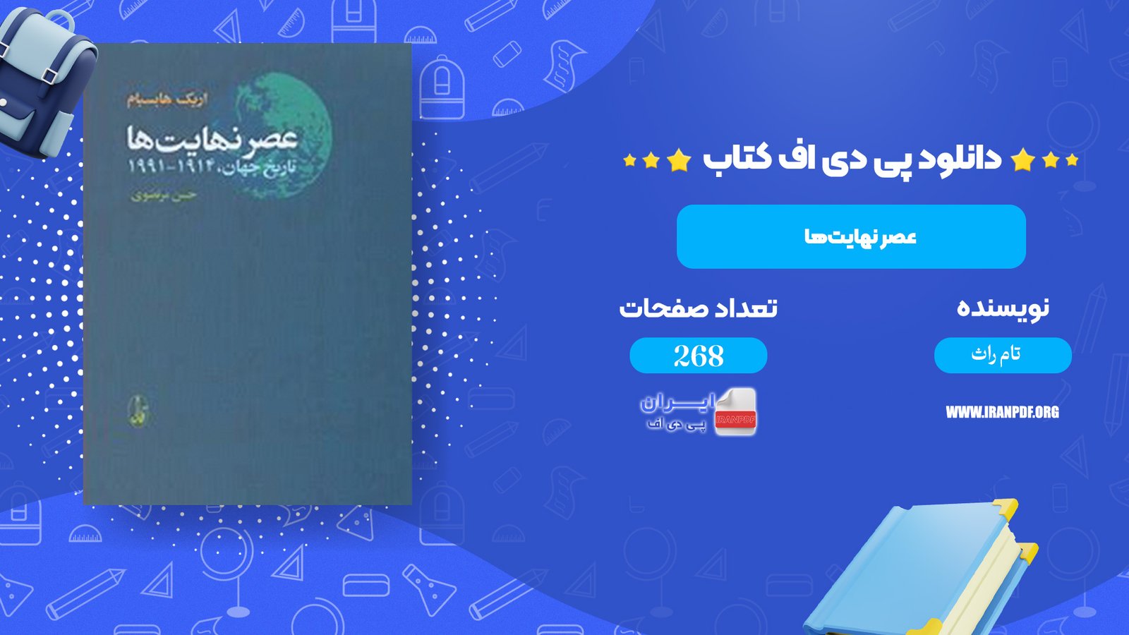 وب سایت ایران پی دی اف بزرگترین سایت فروش پی دی اف اینبار دانلود pdf کتاب عصر نهایت‌ها حسن مرتضوی را با دقت و بهترین کیفیت آماده کرده استکتاب “عصر امپراتوری: ۱۸۷۵–۱۹۱۴” نوشته اریک هابسبام، یکی از آثار برجسته تاریخی است که در سال ۱۹۸۷ منتشر شده و سومین کتاب از سه‌گانه‌ای است که به “قرن طولانی ۱۹” پرداخته است. این سه‌گانه شامل کتاب‌های “عصر انقلاب: اروپا ۱۷۸۹–۱۸۴۸” و “عصر سرمایه: ۱۸۴۸–۱۸۷۵” است و کتاب چهارم، “عصر افراط و تفریط: قرن بیستم کوتاه، ۱۹۱۴–۱۹۹۱″، به عنوان دنباله‌ای بر این سه‌گانه عمل می‌کند.
